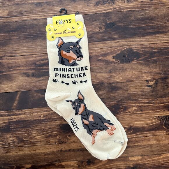 NWT Foozys Miniature Pinscher Novelty Crew Socks Dog Women One Size