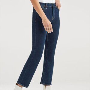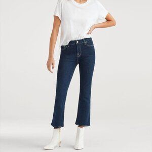 High waist slim fit jean gets updated with a cropped kick hem for a little sass. Made from signature stretch denim in dark indigo that has been evenly dyed to produce a sophisticated wash that looks crisp and fresh against contrast threads.