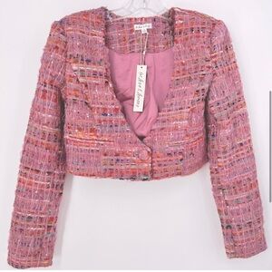 NWT For Love and Lemons Dionne pink tweed skirt set size M💕This set features a skirt, top, and blazer. Comes from a smoke free home🌸