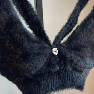 NWT For Love And Lemons fuzzy black bralette flower detail size XS