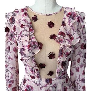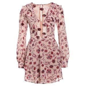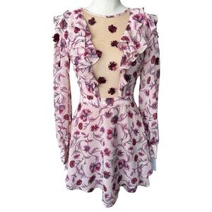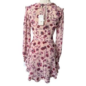NWT For Love & Lemons Agnes Floral Plunge Mini Dress in Soft Rose XS