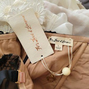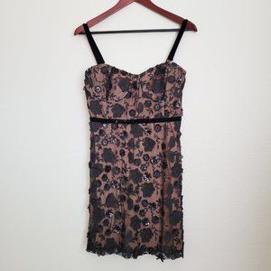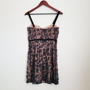 NWT For Love & Lemons Beatrice Embroidered Strappy Mini Dress Nude Black, Large