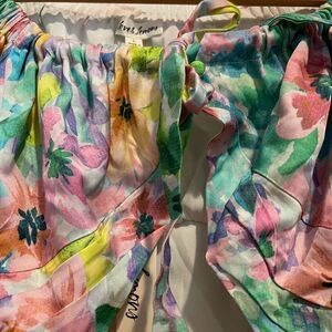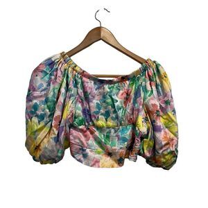 NWT For Love & Lemons Blaire Crop Top Size L Floral Off Shoulder Balloon Sleeves