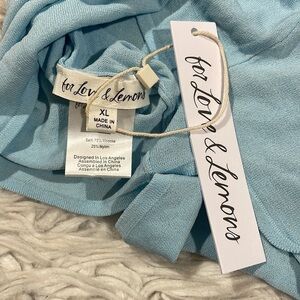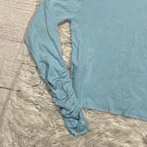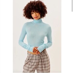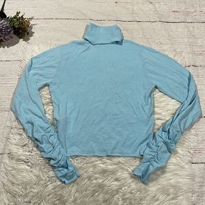 New with tags For Love & Lemons blue colored Sadie turtleneck ruched sleeve long sleeve mesh top