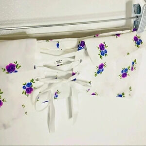 NWT For Love & Lemons Dahlia Boyfriend Shirt Corset Belt Blue White Floral