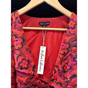 NWT For Love & Lemons Davina Tie Front Blouse in Red Size XS $149 MSRP