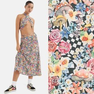 NWT For Love & Lemons Deidre Checkered Mushroom Print Cross Front Halter Top