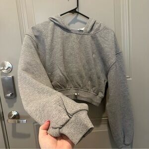 NWT For Love & Lemons Josie Cropped Hoodie Size XXS Grey Embroidered Sweatshirt