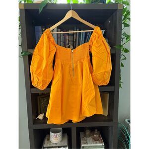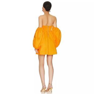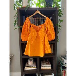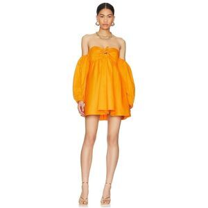 NWT For Love & Lemons Lucia Mini Dress Off the Shoulder Tie Front Orange Small