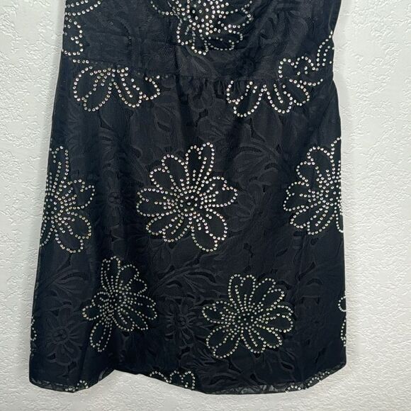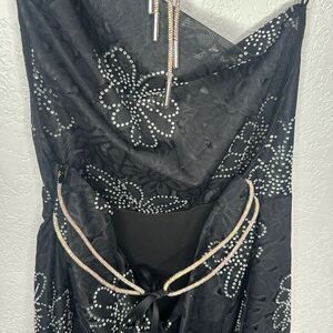 NWT For Love & Lemons Pamela Black Rhinestone Floral Embellished MiniDress Large