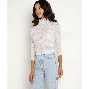 NWT For Love & Lemons Tracy Turtleneck Crop Top In White Size XS