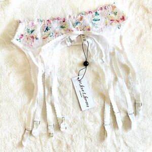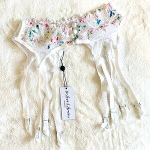 NWT For Love & Lemons White with Rainbow Floral Garter Belt - Extra Small