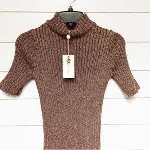 For Love & Lemons Knitz Sparkle Knit Turtleneck Dress in Metallic Mauve