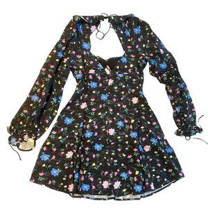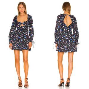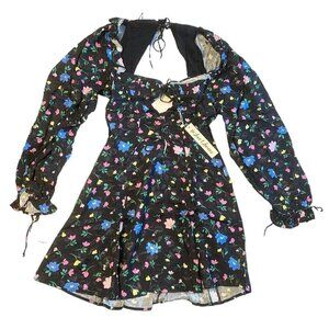 NWT For Love and Lemons Lexy Black Floral Long Sleeve Mini Dress - S