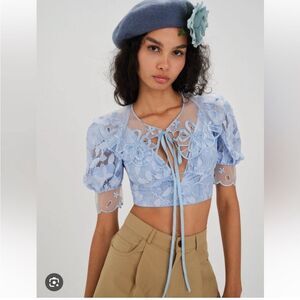 NWT For Love and Lemons Uma Blue Lace Removal Collar Crop Top Size Medium