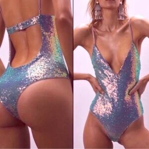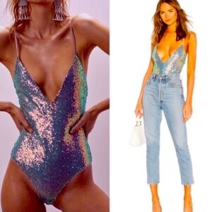 NWT For Love and Lemons sequin Cosmo bodysuit RARE size M