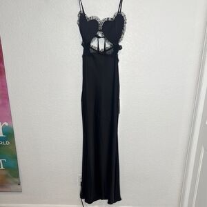 NWT For Love And Lemons Val Maxi Dress in Black XL Revolve Hearts