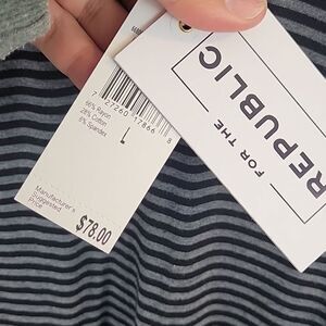 NWT, For the Republic-Black and Gray Striped Dress with Open Back-Size Large