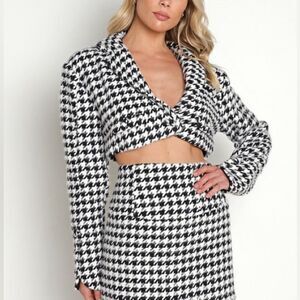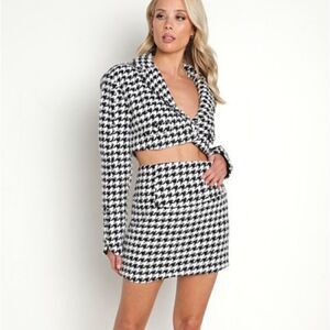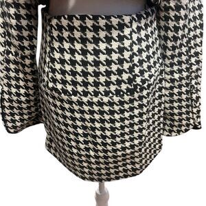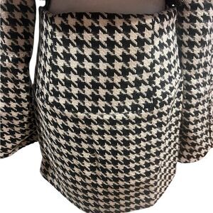 90s-inspired houndstooth mini skirt featuring wide-angled waistband and a deliciously soft feel. Back zipper, fully lined.
