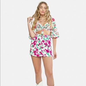 Adorable pink floral mini skirt with darlin button and pocket details from For Love and Lemons! Brand new with tags attached. Comment with questions
