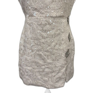 NWT Fore Glittery Poise Tweed Mini Dress Cream Sequin Embellished Size Large