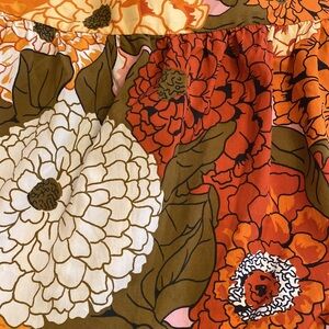 NWT fun orange and yellow floral print maxi dress with scoop back and ruffle bottom.