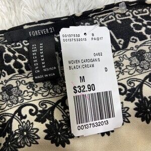 NWT Forever 21 Black Cream Woven Cardigan Sz M