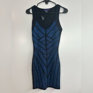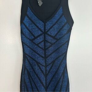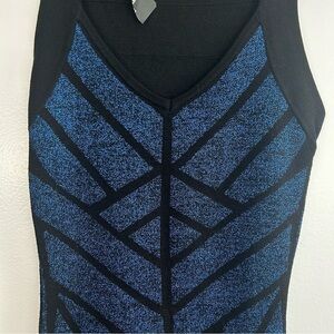 NWT Forever 21 Blue Metallic Sleeveless Geometric Bodycon Mini Dress Size Small