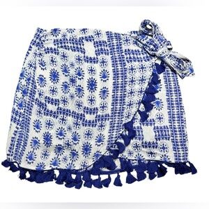 NWT Forever 21 Blue White Tassel Wrap Mini Skirt XS Boho Festival