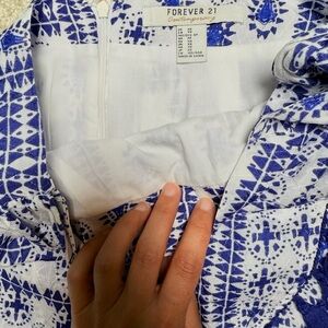 Brand new with tags Forever 21 Contemporary wrap mini skirt in size XS. Features a bold blue and white geometric print, playful tassel fringe hem, and tie-front wrap style. Lightweight woven fabric with full lining for comfort. Perfect for summer festivals, beach vacations, or adding a pop of boho charm to your everyday style.