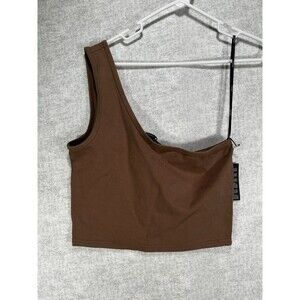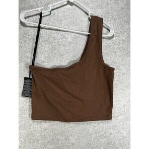 NWT Forever 21 Brown One Shoulder Crop Top Tank Womens Size L Cami Bandeau Shirt