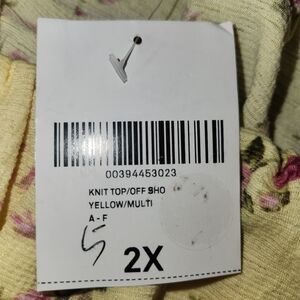 NWT Forever 21 Butter Yellow Top Pink Roses Size 2X On/Off Shoulder Ruffle Neck
