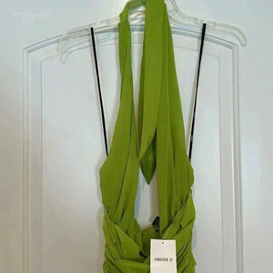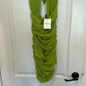 NWT Forever 21 Crisscross Halter Ruched Bodycon Mini Dress Lime Green Apple Sz S