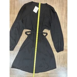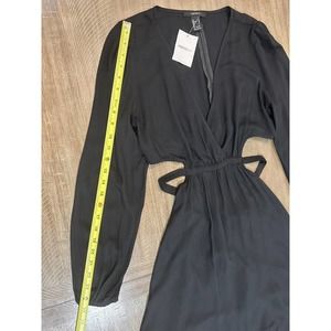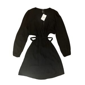 NWT Forever 21 Dress Womens Black Deep V-Neck Long Sleeve Cutout Tie Back Size L
