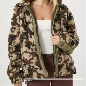 NWT Forever 21 Faux Shearling Camo Print Jacket Sz M Lightweight but substantial
