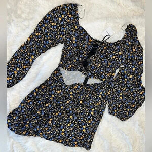 Black with blue and yellow floral detail and open chest cutout, very cute NEW WITH TAGS never worn dress