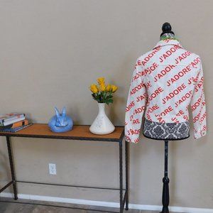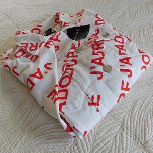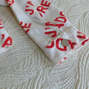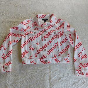 NWT Forever 21 J Adore white cotton denim cropped jean I love letter jacket F21