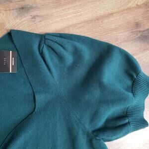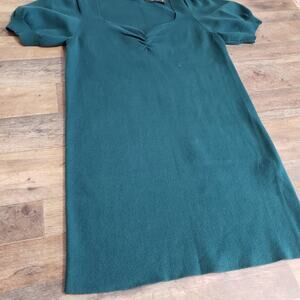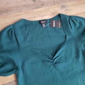 NWT Forever 21+ Knit Emerald Ruched V-neckline Short Sleeve Ribbed Midi Dress
