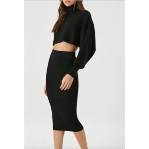 NWT Forever 21 Knit Set Turtleneck Sweater & Midi Skirt Black Ribbed M