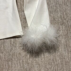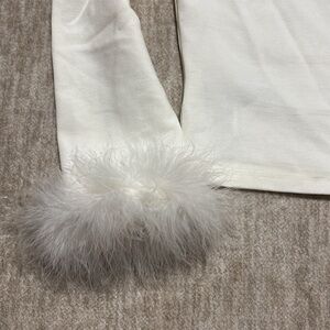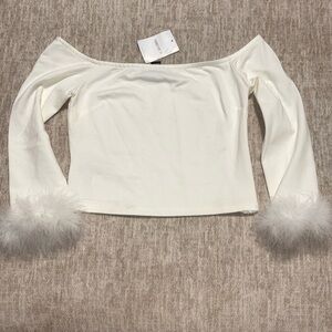 NWT Forever 21 Large Cropped white top off/on shoulder feather sleeves