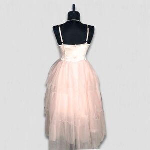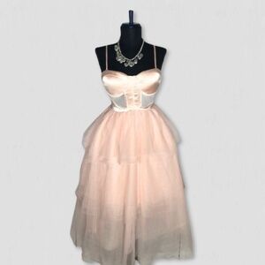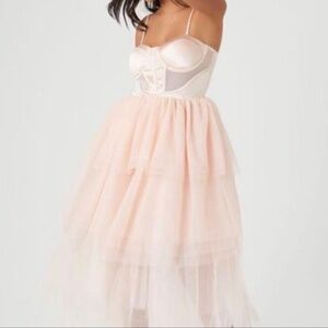 NWT Forever 21 Midi Corset Dress Satin Tiered Tulle Champagne/Blush Pink L