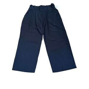 NWT Forever 21 Plus size 1X Black paper bag high wast wide leg pants