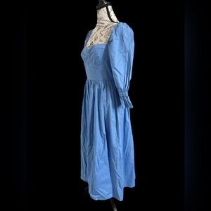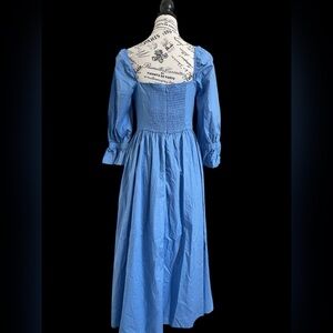 NWT Forever 21 Puff Sleeve Midi Dress Women’s M Square Neck Smocked Back Cotton