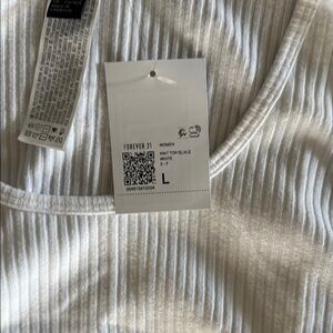 This NWT stylish tank top from Forever 21 features a classic round neckline and a ribbed texture throughout. The white top is designed with ruched sides and adjustable drawstring details, offering a customizable fit. Its stretchy material ensures comfort and a flattering silhouette.