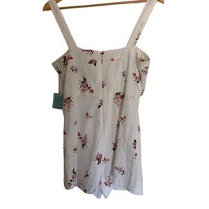 NWT Forever 21 Sunny Spot White Floral Linen Blend Short Romper Large