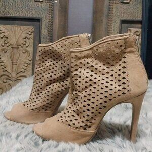 NWT Forever 21 Tan Cut-Out Peep Toe Booties.
