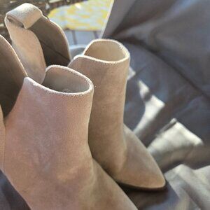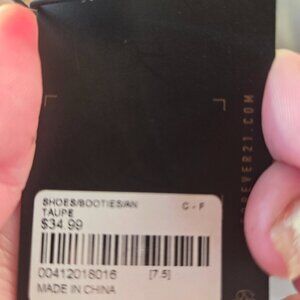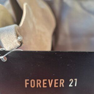 This product is a brand new pair of Forever 21 taupe women's heeled booties in size 7.5. Made of faux suede, these stylish booties are perfect for adding a touch of elegance to any outfit. The beige color and bootie style make them versatile for both casual and dressy occasions.