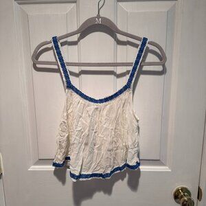 NWT Forever 21 White Top with Blue Trim Cropped Size Medium
