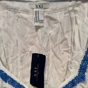 NWT Forever 21 White Top with Blue Trim - Size Medium