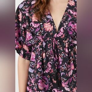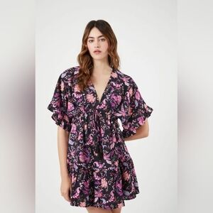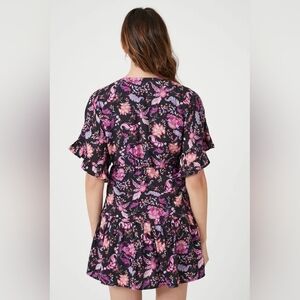 NWT Forever 21 Women's Floral Print Ruffle Mini Dress Black Paisley Size Medium